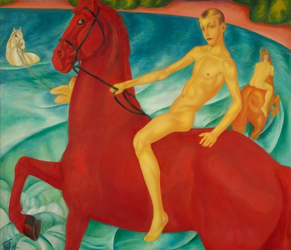 Ce tableau a été considéré comme celui symbolisant « l’esprit du temps », celui des bouleversements la guerre et la révolution. « J’en avais fait trois versions », se souvint plus tard l’artiste. « Au fil de son élaboration, j’ai formulé des exigences de plus en plus strictes sur le plan pictural, afin d’équilibrer la forme et le contenu, et de conférer à l’œuvre une portée sociale. » Il a réussi et nous allons voir que cette synthèse correspond à celle de sa propre vie. L’artiste parvint à unir la tradition des icônes russes, des premières fresques italiennes comme Ucello et du néoclassicisme. Les couleurs froides de l’eau et les lignes arrondies du rivage « propulsent » littéralement le magnifique cheval, tel un feu foudroyant, vers l’avant, c’est un plan sphérique qui a libéré le cheval tout en l’intégrant dans la composition. Le chercheur en art D.V. Sarabyanov analysa cette œuvre et écrivit : « Le symbole est… très vaste. Il évoque la « Jument des steppes » de Blok, à l’image de laquelle se sont formés… le passé de la Russie, son présent difficile et cette chose infinie et impérissable qui demeure à jamais. » Cette révolution sans laquelle rien d’aujourd’hui ne serait.