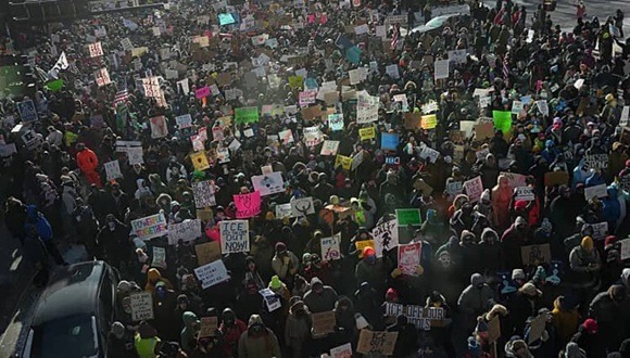 Ce mouvement était prévu comme la plus grande manifestation depuis le début de la répression des migrants par l’administration Trump dans cet État, et il a eu lieu malgré les températures glaciales, qui, selon le Service météorologique national, oscillaient entre -20 et -30 degrés Celsius.