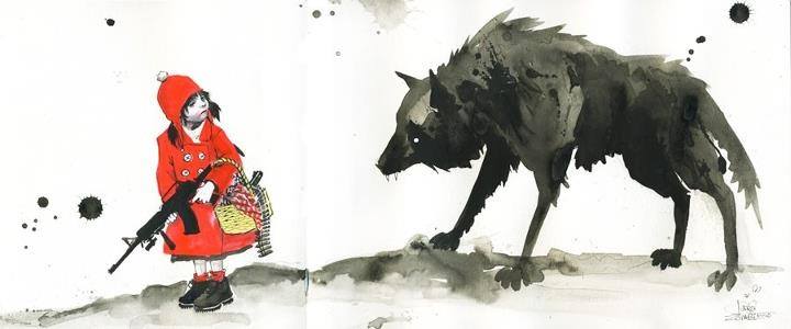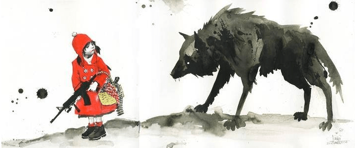 Eh bien… tout va bien », a dit le Petit Chaperon rouge. – J’apporte des tartes à mamie, tu as des yeux – pour mieux me voir, des oreilles – pour mieux m’entendre. Et c’est pour ça mon pote loup que tes GENOUX TREMBLENT autant ?