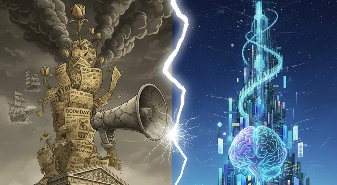 Le catastrophisme ambiant ne se limite pas à la crainte rationnelle de toutes les bulles financières proches d’exploser (rationnelle pour la seule raison qu’effectivement elles sont toutes indexées sur le dollar). Il y a le catastrophisme de nos sociétés épuisées devant l’IA. Ce changement technologique effectivement fondamental est lui aussi décrit sous la forme d’abcès susceptible de crever et en train d’empoisonner le peu qu’il nous reste de vivable et la foule des Cassandre nous interpelle en nous invitant à nous soumettre à la peste du chômage, de la misère et au choléra de l’armement face aux avancées du concurrent. Cette panique provoquée est destinée à nous éviter de penser le changement complexe du présent déjà là et la part que nous pourrions y prendre en tant que citoyens autant que créatif producteur, être humain dans de nouveaux rapports de production.
