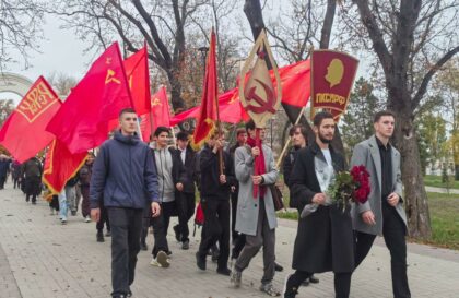 7 novembre à Marioupol : des membres du Komsomol et de jeunes communistes ont conduit la jeunesse de la ville à une marche de masse.…