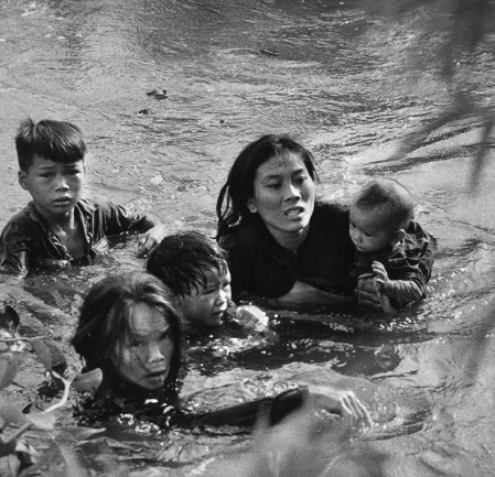 En 1966, une image poignante capturait une mère sud-vietnamienne traversant une rivière avec ses quatre enfants, fuyant leur village près de Qui Nhon. L’Air Force américaine avait ordonné l’évacuation de la région après avoir averti que les forces Vietcong l’utilisaient comme base pour attaquer les Marines américains. La photo, prise par le photojournaliste japonais Kyoichi Sawada, ne capturait pas la stratégie ou la politique, mais le coût humain brut de la guerre : une mère portant tout ce qui comptait à travers l’eau, l’incertitude et la peur.