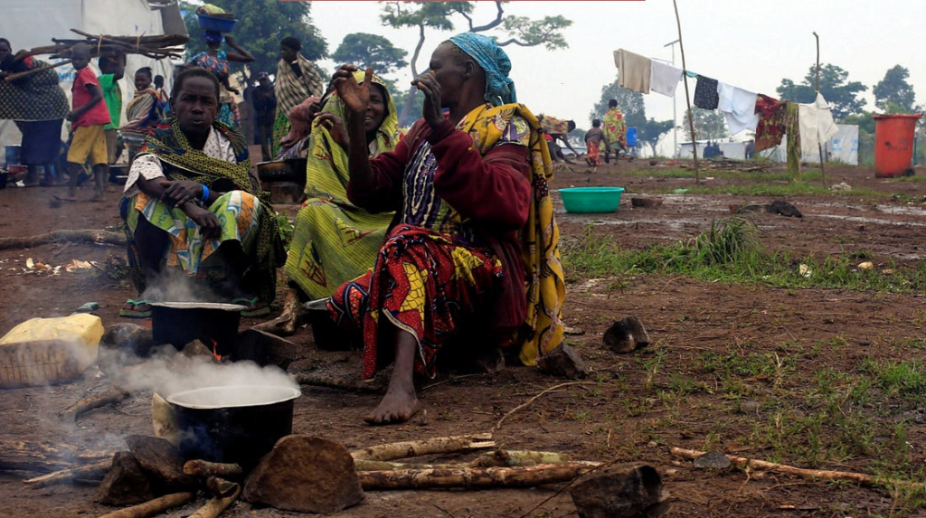 Depuis des décennies, des dizaines de millions de réfugiés se déplacent d’un camp à l’autre, souvent plusieurs fois par an. Les plus chanceux possèdent une unique marmite qu’ils transportent sur la tête. Dans chaque camp, on leur donne un morceau de plastique et du bois ou des branches pour construire un petit abri après avoir déblayé le sol des pierres.