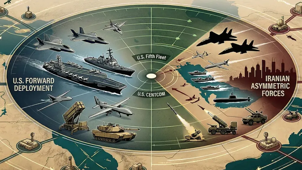 Les frappes contre l’Iran auraient été menées depuis les porte-avions et les destroyers de l’US Navy actuellement stationnés dans la région. Des batteries de défense antimissile sont déployées pour protéger les sites et bases stratégiques, tandis qu’une multitude d’avions de chasse, de bombardiers et de reconnaissance peuvent opérer depuis les nombreuses bases de la région.