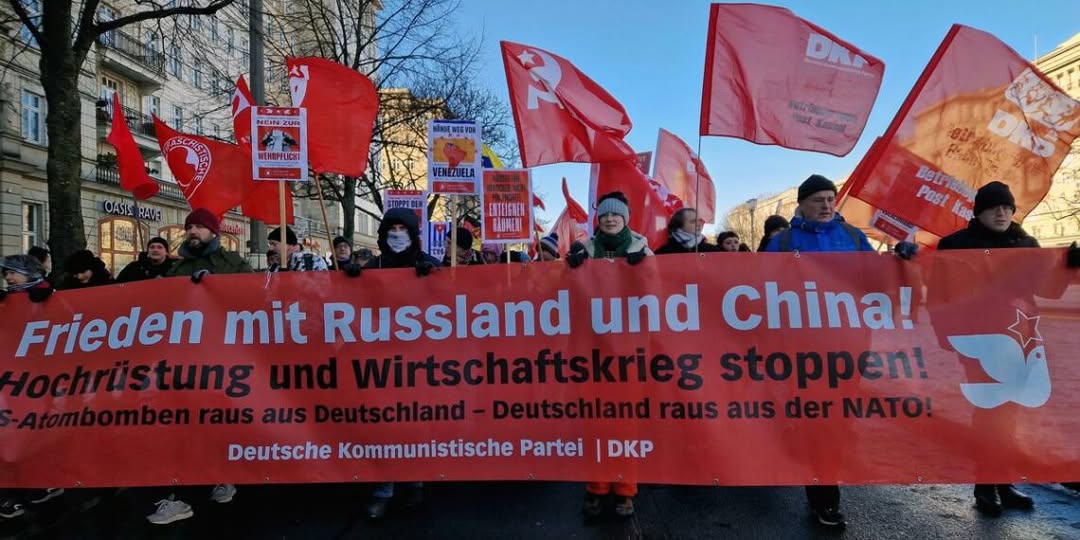 L’article Jung und laut für den Frieden (Jeunes et bruyants pour la paix) rapporte que les manifestants ont défilé avec des drapeaux rouges, internationaux et solidaires, exprimant non seulement leur attachement à la mémoire de Luxemburg et Liebknecht, mais aussi leur opposition aux logiques de guerre et aux interventions militaires en cours de l’Axe impérialiste USA-UE-OTAN, de l’Ukraine au Venezuela. Les discours prononcés lors de la marche ont souligné la nécessité d’une solidarité internationale contre l’impérialisme et le militarisme, mettant l’accent sur la lutte contre les préparatifs de guerre, l’opposition à la conscription et l’appel à des solutions diplomatiques aux conflits.