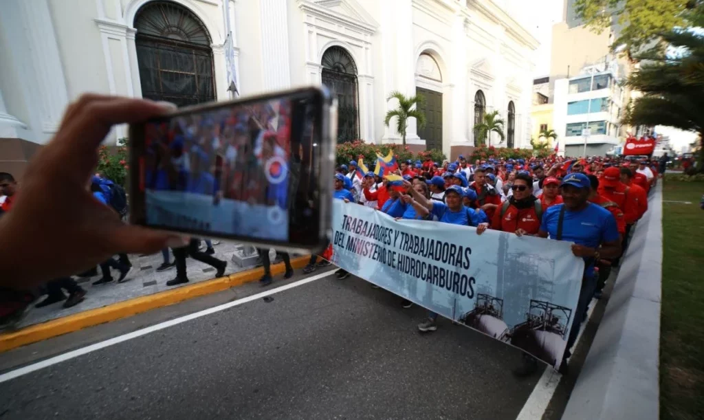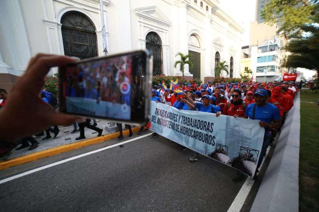 Les travailleurs du secteur pétrolier ont manifesté ce jeudi à Caracas pour exprimer leur soutien à la réforme partielle de la loi sur les hydrocarbures et pour exiger la libération du président Nicolás Maduro et de la Première dame Cilia Flores.
