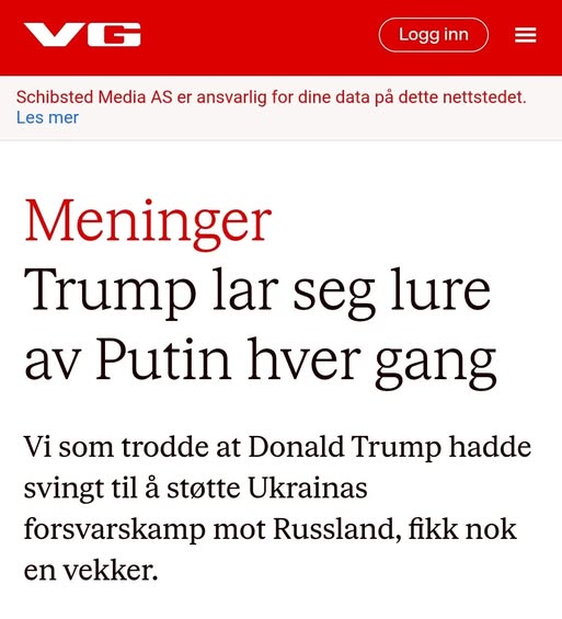 Ce que la plupart des Norvégiens ne savent peut-être pas – parce que nos médias ne veulent pas en parler – c’est qu’une grande majorité d’Ukrainiens veulent aussi des négociations immédiates. Mais dans notre nation de guerre, une rencontre entre Trump et Poutine est condamnée, parce que nos politiciens et médias pensent que le désir de diplomatie et de négociations signifie que vous êtes « pro-russe » et « poutiniste ».