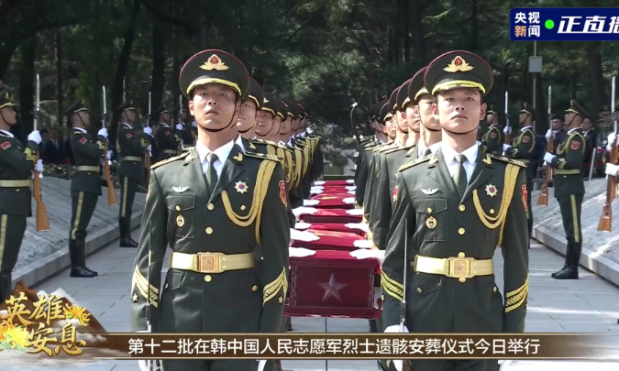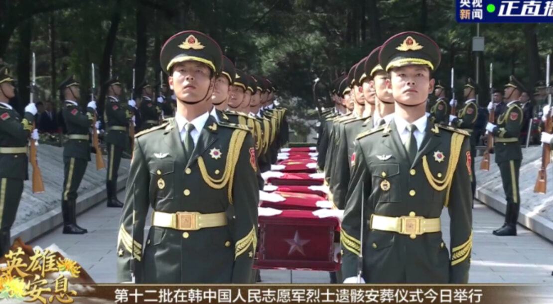 Des vidéos des médias officiels ont montré que la garde d’honneur a tiré 12 coups de feu, le plus haut salut cérémoniel, pour rendre hommage aux martyrs au cimetière des martyrs du PCV à Shenyang. La fanfare militaire a joué le Chant du Souvenir et, sous l’escorte armée de soldats de l’APL, la garde d’honneur a solennellement escorté les cercueils des martyrs sur le site.
