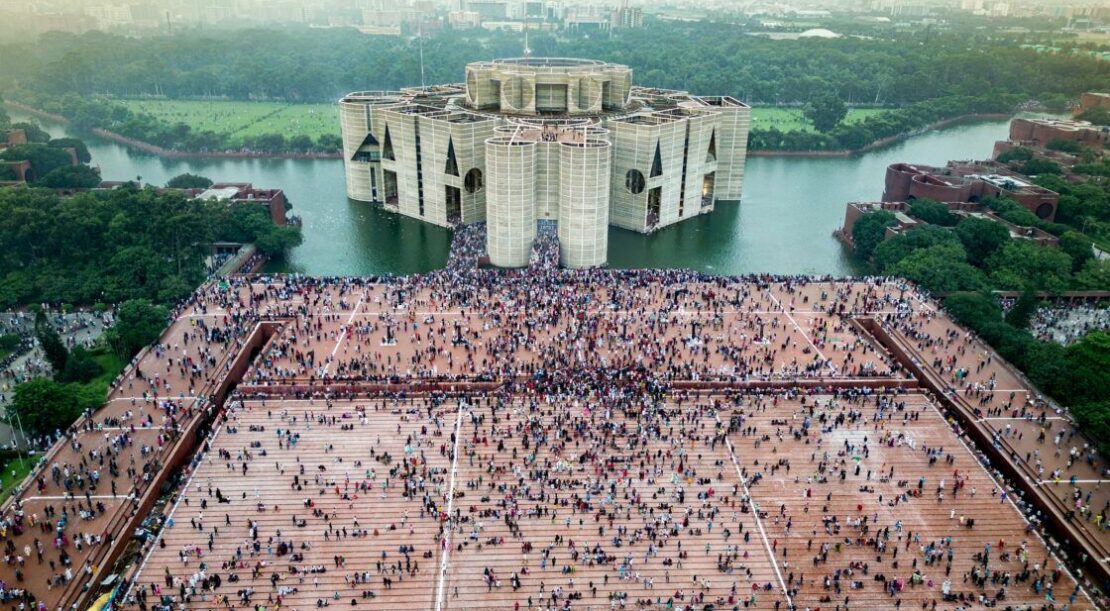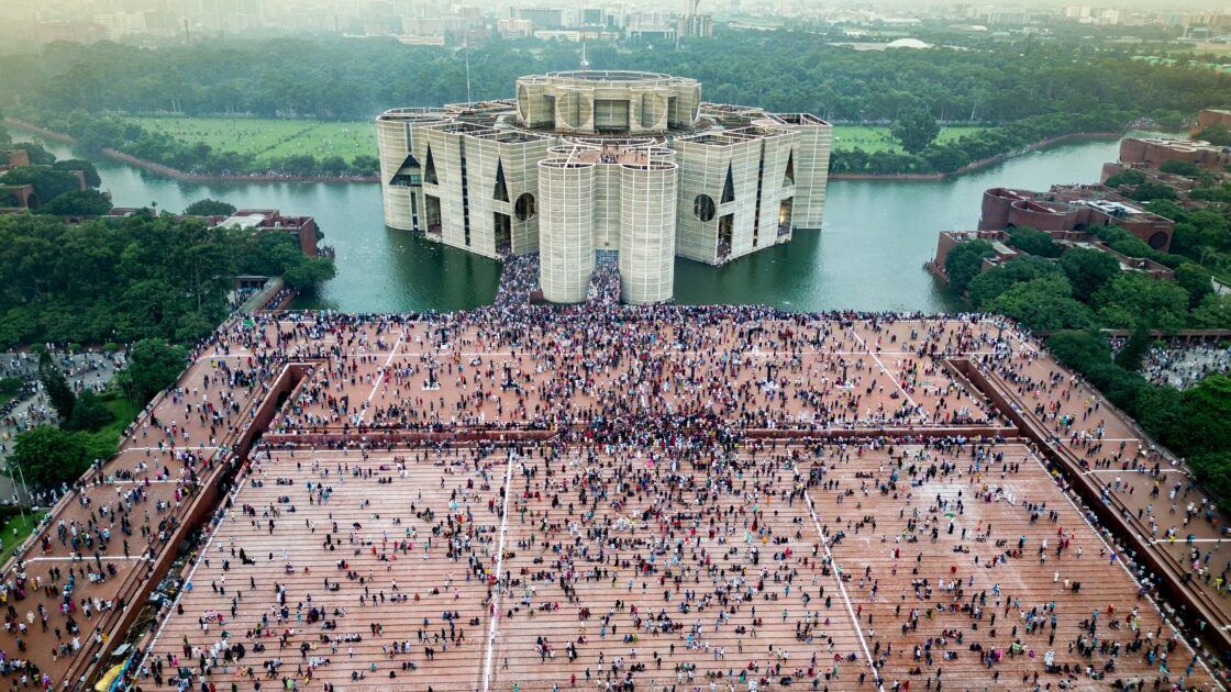 Le Jatiya Sangsad Bhaban pris d’assaut par les manifestants suite à la révolution de juillet. Crédit photo : Shazid Ahsan – CC BY-SA 4.0