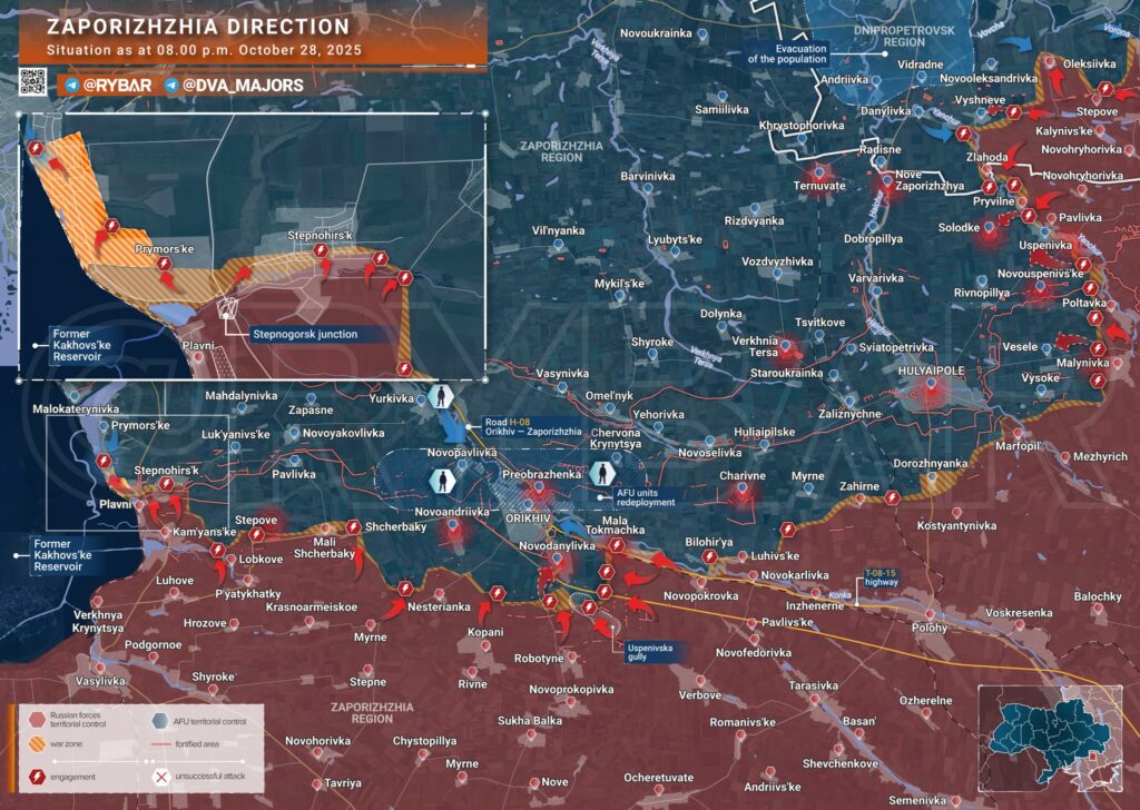2.- Dans la direction de Zaporiyia, les combats acharnés se poursuivent. Les forces armées de la Fédération de Russie continuent de travailler méthodiquement pour identifier et détruire les positions de l’ennemi. Les groupes d’assaut, sous de nombreuses attaques de drones, tentent de prendre pied dans des bâtiments à moitié effondrés et de faire avancer l’offensive.