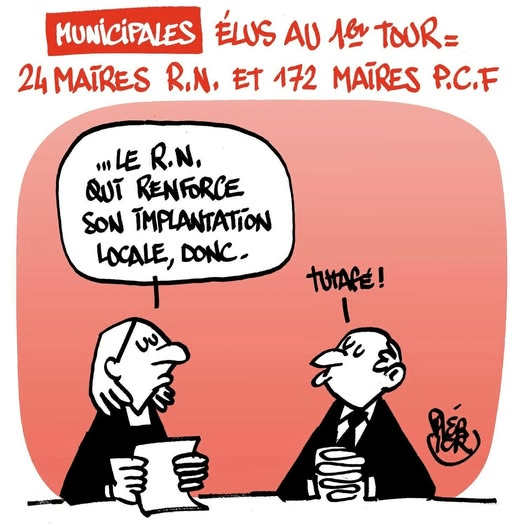Qui s’est interrogé tout au long de cette campagne des municipales entre la cloison étanche qui s’était créée entre la crise du côté d’Ormuz, la montée du prix de l’essence, les dangers de guerre, mais aussi la crise alimentaire, tous ces nuages qui s’accumulent à l’horizon à cause d’Ormuz mais aussi la perte de confiance dans le système. Il y a cette réalité et face à cela il y a cette campagne très « localisée ». Notez l’atomisation volontaire, le fait qu’il y a eu peu de leaders nationaux pour intervenir en tant que tels. C’était d’autant plus stupéfiant que cette manière de coller au terrain se heurtait aux ambitions manifestes de « leaders » constituant leur assise de députés, sénateurs, le tout conçu pour étayer un leader présidentiel avec un fond de montée de l’extrême droite. Et cette « atomisation » a atteint un nouveau seuil au vu des résultats. Pourtant pour les Français se dessinait en filigrane le poids de la réalité : les menaces de guerre, le prix de l’essence, mais aussi une « résistance » populaire qui à sa manière revendiquait les fondamentaux, ce qui était nié depuis des décennies et a continué à l’être par un prisme médiatique dépassé et qui s’ingénie à nous masquer les possibles, ceux qui naissent de la lutte des classes, la revendication à la justice à la souveraineté sur nos propres décisions nationales, cette marque de fabrique du peuple français.