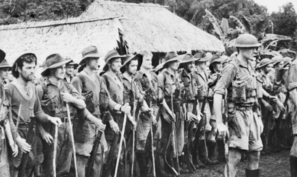 Elle a en réalité été créée bien plus tôt à partir d’une photo de troupes australiennes (du moins ce qu’il en restait) en formation après avoir stoppé l’armée impériale japonaise sur la piste Kokoda en Nouvelle-Guinée en 1942.