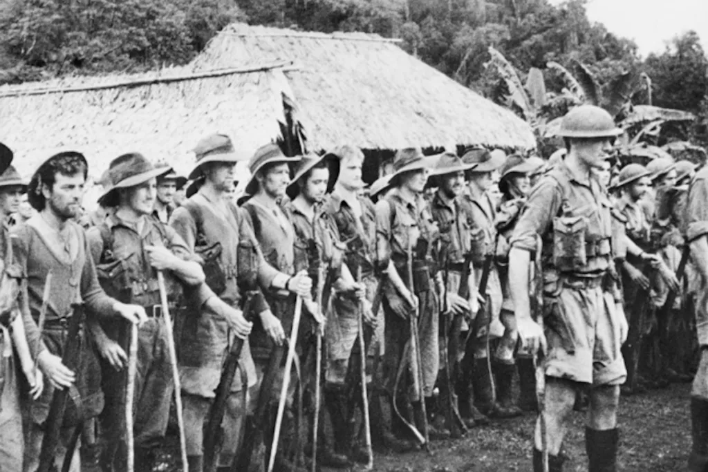 Elle a en réalité été créée bien plus tôt à partir d’une photo de troupes australiennes (du moins ce qu’il en restait) en formation après avoir stoppé l’armée impériale japonaise sur la piste Kokoda en Nouvelle-Guinée en 1942.