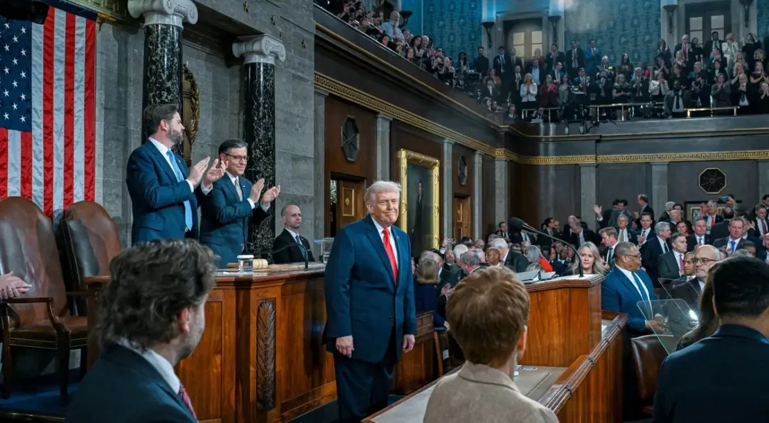 Il a proclamé qu’il était à l’origine d’une « transformation sans précédent » et que, sous sa direction, en seulement un an, « l’Amérique est de retour… C’est l’âge d’or de l’Amérique ». Il a ensuite énuméré plusieurs de ses réalisations : contre toute évidence, il a déclaré que l’économie était florissante, que le pays possédait « la frontière la plus forte et la plus sûre de notre histoire », qu’aucun immigrant sans papiers n’avait réussi à la franchir au cours des neuf derniers mois et que le trafic de fentanyl à la frontière avait diminué de 56 %.