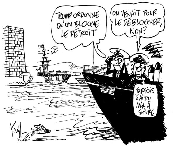 Hier j’ai tenté d’expliquer la manière dont le syndic de faillite qu’est Trump jouait l’événement comme manifestation de la toute puissance du caprice. Mais l’événement a des conséquences « fille du temps ». La rupture des négociations s’est produite sur un coup de tête et la décision de bloquer le detroit d’Ormuz qui ne peut qu’être payé par la consommateur et par les « alliés » déjà branlant que sont la Corée, le Japon qui se sont montrés aussi peu enthousiastes que les Européens de l’OTAN . Bloquer le détroit d’Ormuz était la seule manière de ne pas toucher à la reprise de la guerre, une reprise de la main qui devrait donner ses résultats à la bourse qui ne va pas dans le sens de la victoire de quiconque, si vous ne faites pas ce que je dis je détruis votre économie et celle de vos proches. Un coup pour rien mais pas tout à fait en particulier il y a comme c’est décrit ici des conséquences comme la prolifération des armes atomiques. Il y a le fait que cet atrabilaire n’est pas « notre président » mais celui d’un pays les Etats-Unis où le pouvoir est concentré de manière terroriste dans les mains d’un président qui peut être tel que celui que nous n’avons pas élu peut prendre des décisions dont nous payerons les conséquences parce qu’il est le bras armé du capitalisme à son stade ultime impérialiste. Comme nous l’avions décrit autour du détroit d’Ormuz, le monde a basculé dans quel sens, il est trop tôt pour le dire mais ce n’est pas dans le sens de la paix, du progrès et il faut enfin en mesurer l’impact au lieu de continuer à donner ce triste spectacle des divisions autour d’ambitions présidentielles. (note et traduction de danielle Bleitrach)