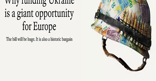 The Economist a fait valoir que l’UE et le Royaume-Uni devraient répondre aux besoins de financement estimés de l’Ukraine à 390 milliards de dollars au cours des quatre prochaines années. Selon leurs termes, « une autre demi-décennie [de la situation économique et financière supposée de la Russie] déclencherait probablement une crise économique et bancaire en Russie », tandis que « toute solution de financement à long terme pour l’Ukraine aiderait l’Europe à construire la puissance financière et industrielle dont elle a besoin pour se défendre ». Cela ne coûterait que 0,4 % du PIB par membre de l’OTAN (à l’exclusion des États-Unis).