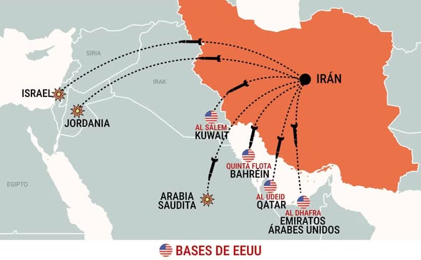 De son côté, Téhéran a riposté par une offensive contre Tel Aviv qui a entraîné la mort de deux personnes, et contre des bases militaires américaines à Bahreïn, au Qatar, aux Émirats arabes unis (EAU), en Arabie saoudite, en Jordanie, au Koweït et en Irak.