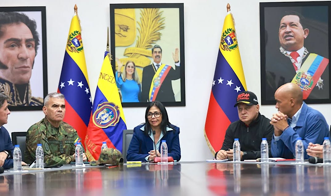 La présidente par intérim Delcy Rodriguez rencontre ses principaux collaborateurs dimanche 4 janvier à Caracas (Vicepresidencia de Venezuela/Wikimedia Commons)