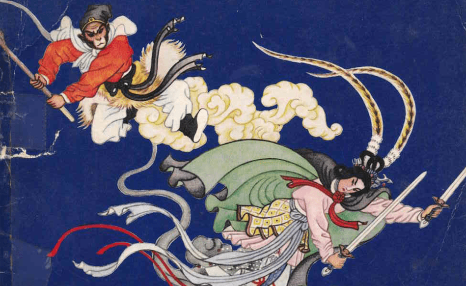 Illustration: ‘Le roi des singes et la sorcière au squelette’ : extrait du Si Yeou Ki (Le pèlerinage vers l’ouest) roman fantastique de Wou Tcheng-en paru au XVIe siècle. Souen Wou-Kong est le roi des singes.