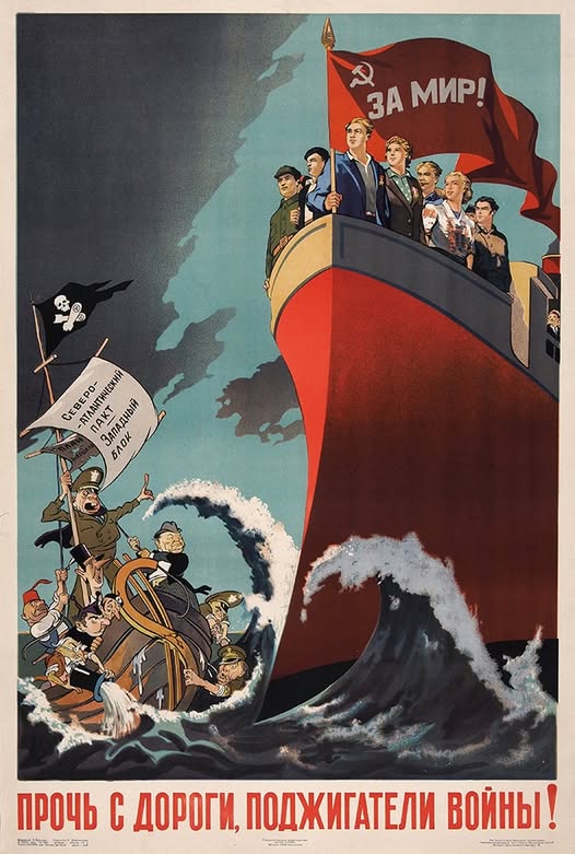 affiche soviétique de 1949: écartez vous les bellicistes la paix veut passer…