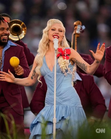 Invitée spéciale et vedette d’un moment unique, la sublime Lady Gaga, que l’on pourrait qualifier de « latinisée », nous a surpris avec une performance spectaculaire de son dernier tube, « Die with a Smile », cette fois-ci en version salsa. Elle portait une robe bleue, couleur du drapeau portoricain que Benito hissera plus tard, et son seul accessoire était une fleur de maga, la fleur nationale de Porto Rico. Sur un écran géant, le crapaud à crête portoricain, symbole de la résistance portoricaine, contemplait et célébrait le spectacle.